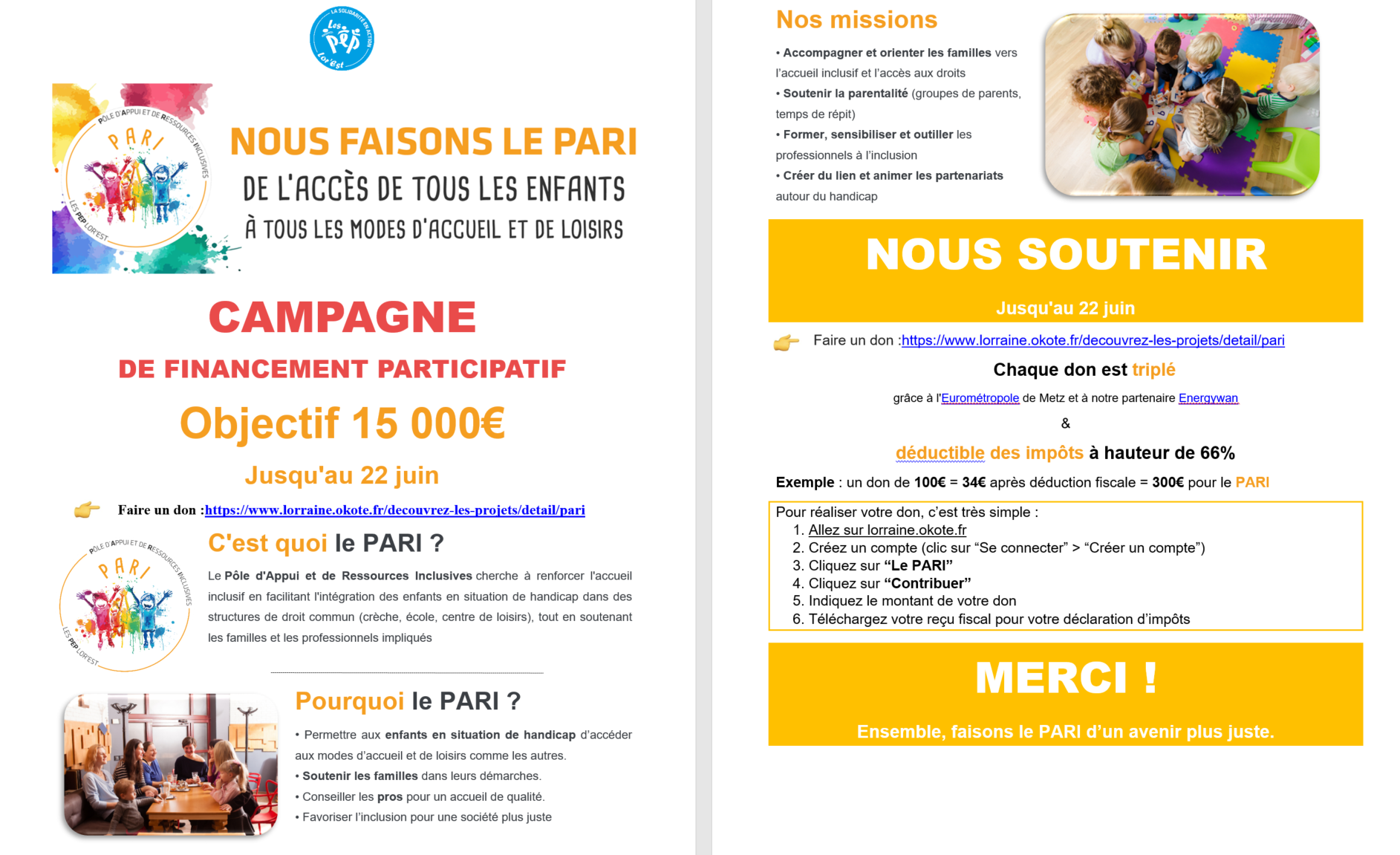 Campagne De Financement ParticipatifObjectif : 15000€Jusqu'au 22 juinFaire un don :https://www.lorraine.okote.fr/dec